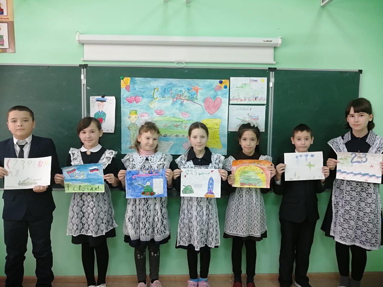 Учащиеся начальных классов поздравили отцов с Днем защитника Отечества.