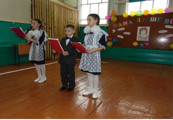 2 декабря в школе учащимися 3-4 классов было проведено мероприятие, посвященное прекрасному празднику Дню матери. Праздник был проведён в форме концерта. В этот день мамы учеников наших классов собрались в актовом зале, чтобы посмотреть на приятные творческие сюрпризы от своих детей. Ученики школы самостоятельно вели концертную программу, читали стихотворения, разыгрывали сценки, пели песни, танцевали. А направляла и руководила всем процессом классные руководители Люция Талховна и Илюса Фатхлисламовна. Все прозвучавшие песни, стихотворения, музыкальные номера и танцевальные композиции были посвящены только любимым мамам. Мамы узнавали о детях что-то новое, открывали для себя новые таланты детей.