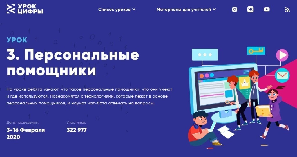 В период с 14 сентября по 27 сентября 2020 года в рамках продолжения всероссийской акции «Урок цифры» 2020-2021 учебного года проводится очередной «Урок Цифры» по теме «Искусственный интеллект».