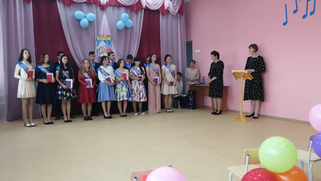 15 июня 2021 года в праздничной атмосфере прошла церемония вручения аттестатов об основном общем образовании выпускникам 9-х классов. Напутственные слова в адрес выпускников сказали директор школы Нуртдинова Л.Ф., заместитель директора по УВР Исламгалиева Р.Ф. Родители выразили благодарность учителям, пожелали успехов выпускникам.