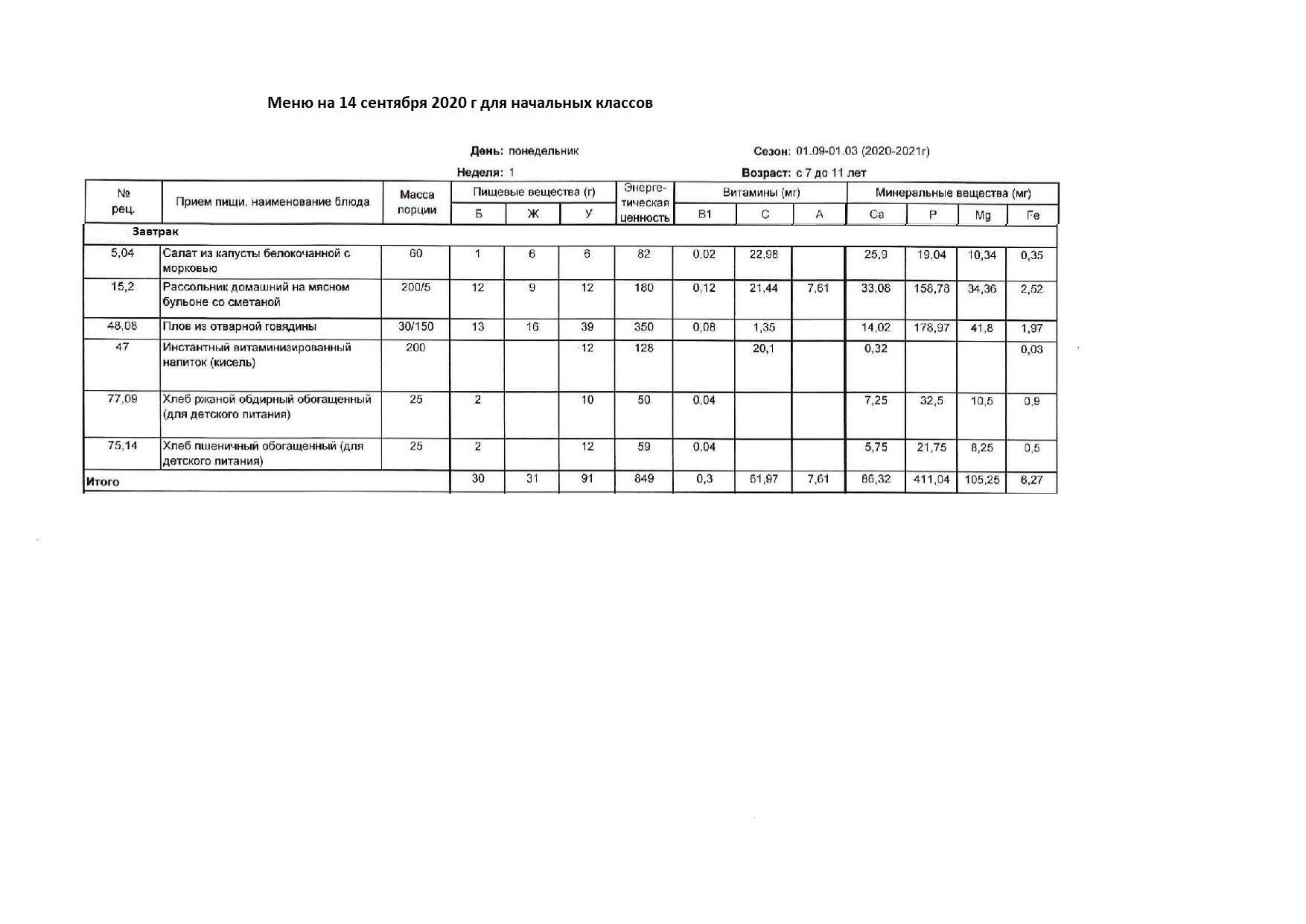Школьное питание