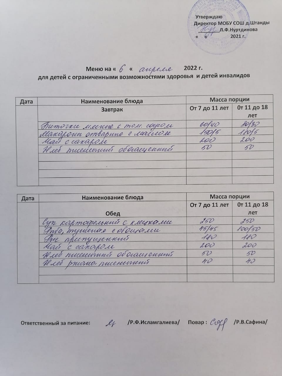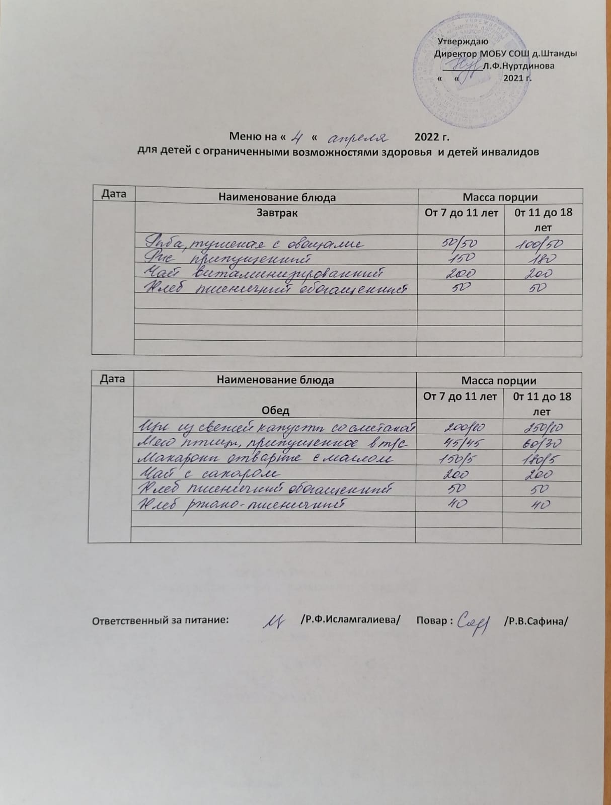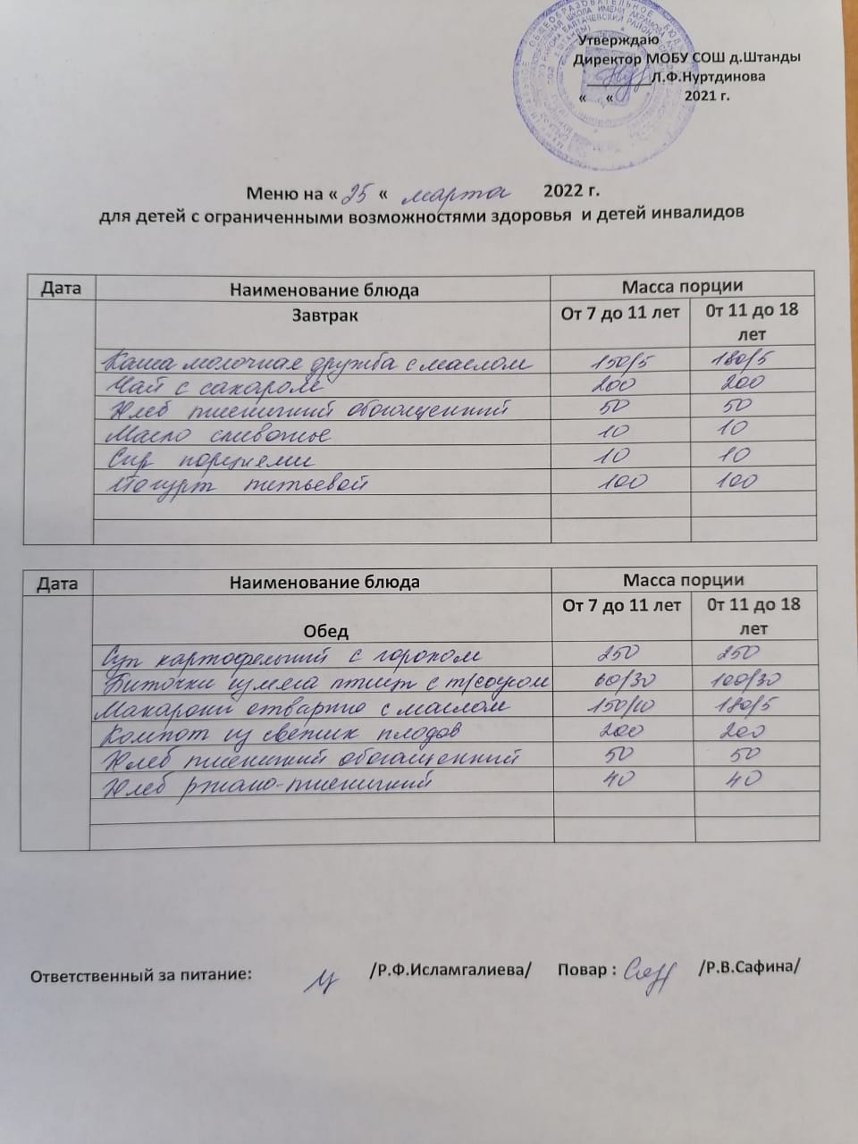 (ОВЗ завтрак и обед)