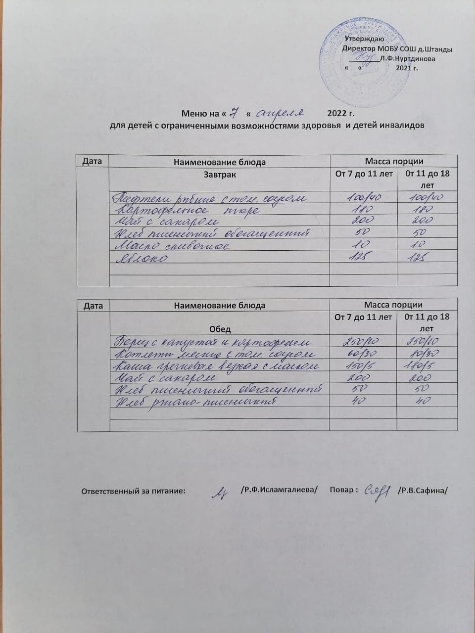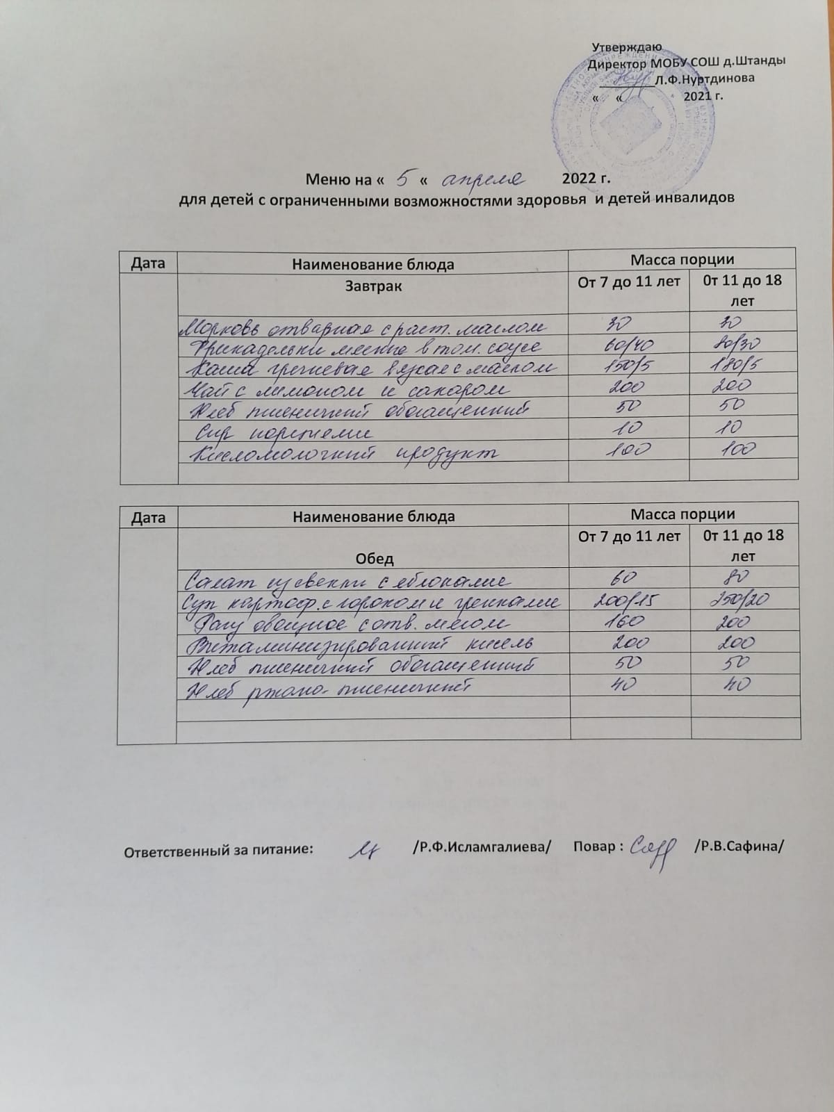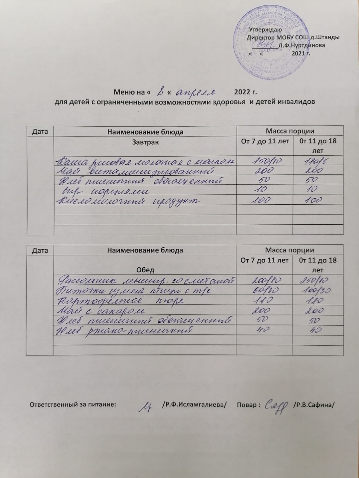 (ОВЗ завтрак и обед)