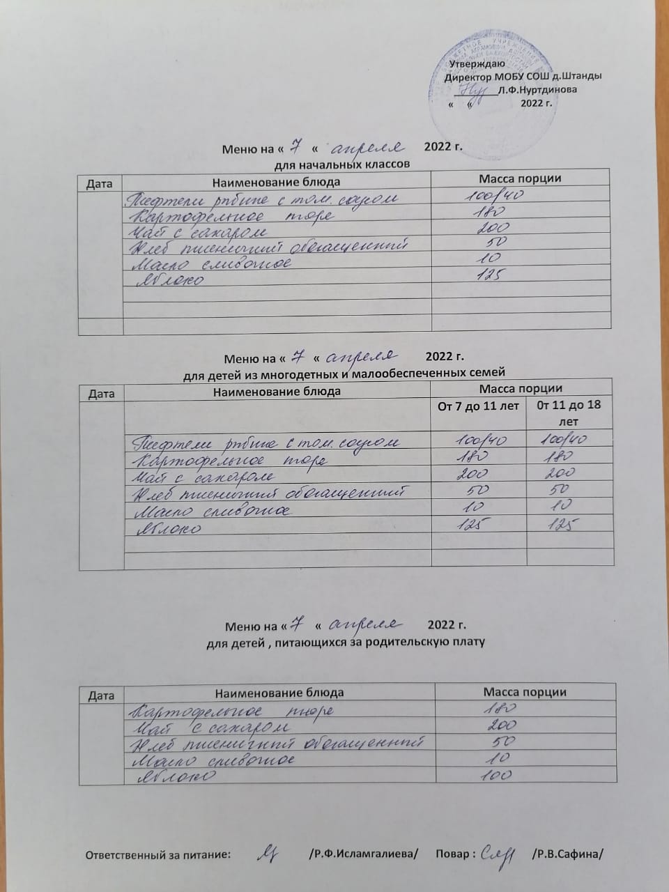 Стоимость школьного питания