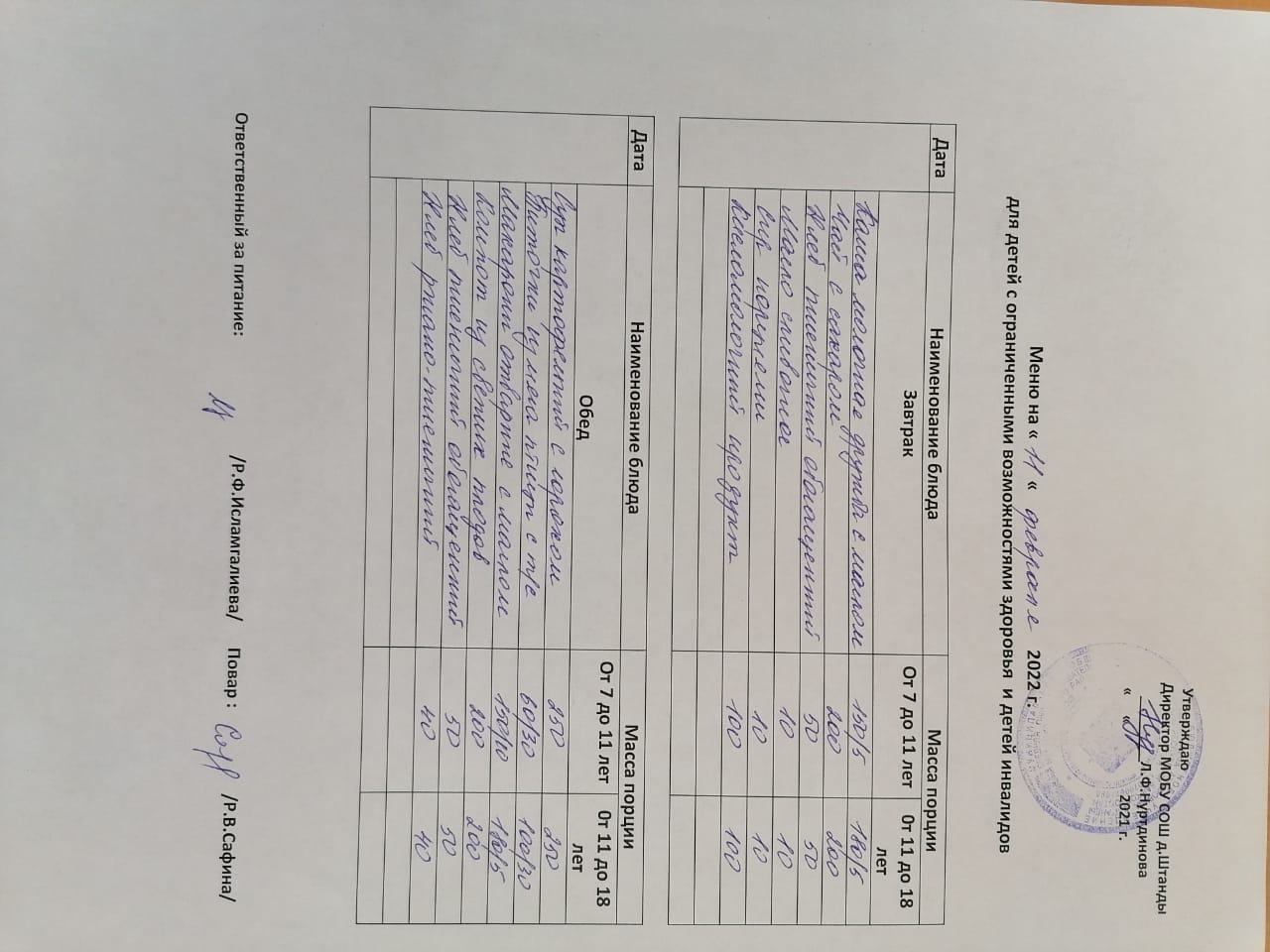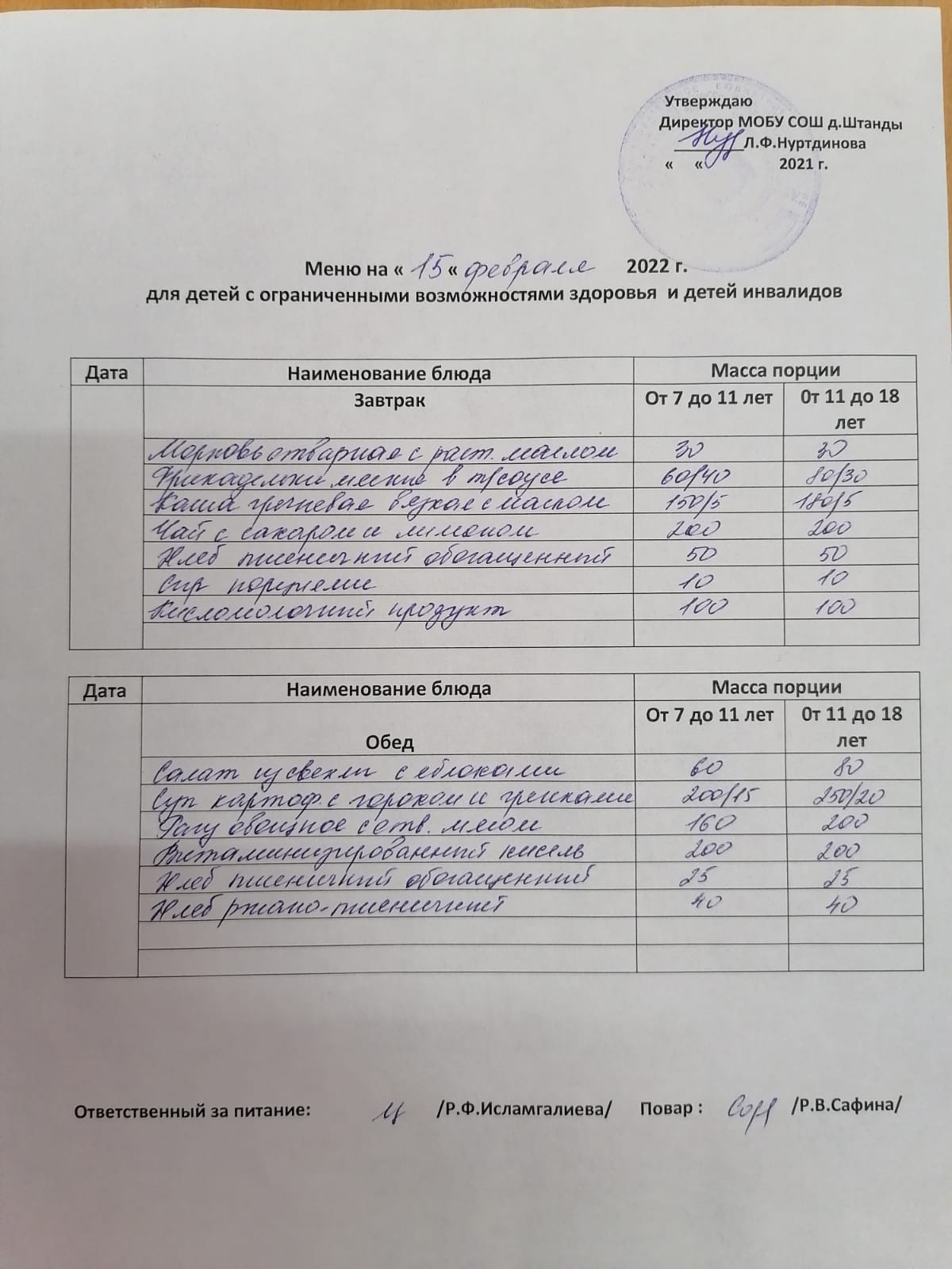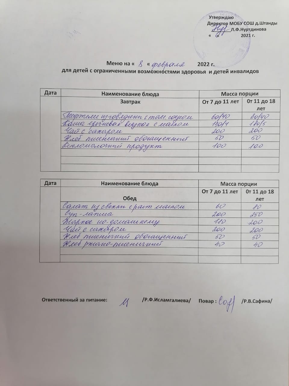(ОВЗ завтрак и обед)