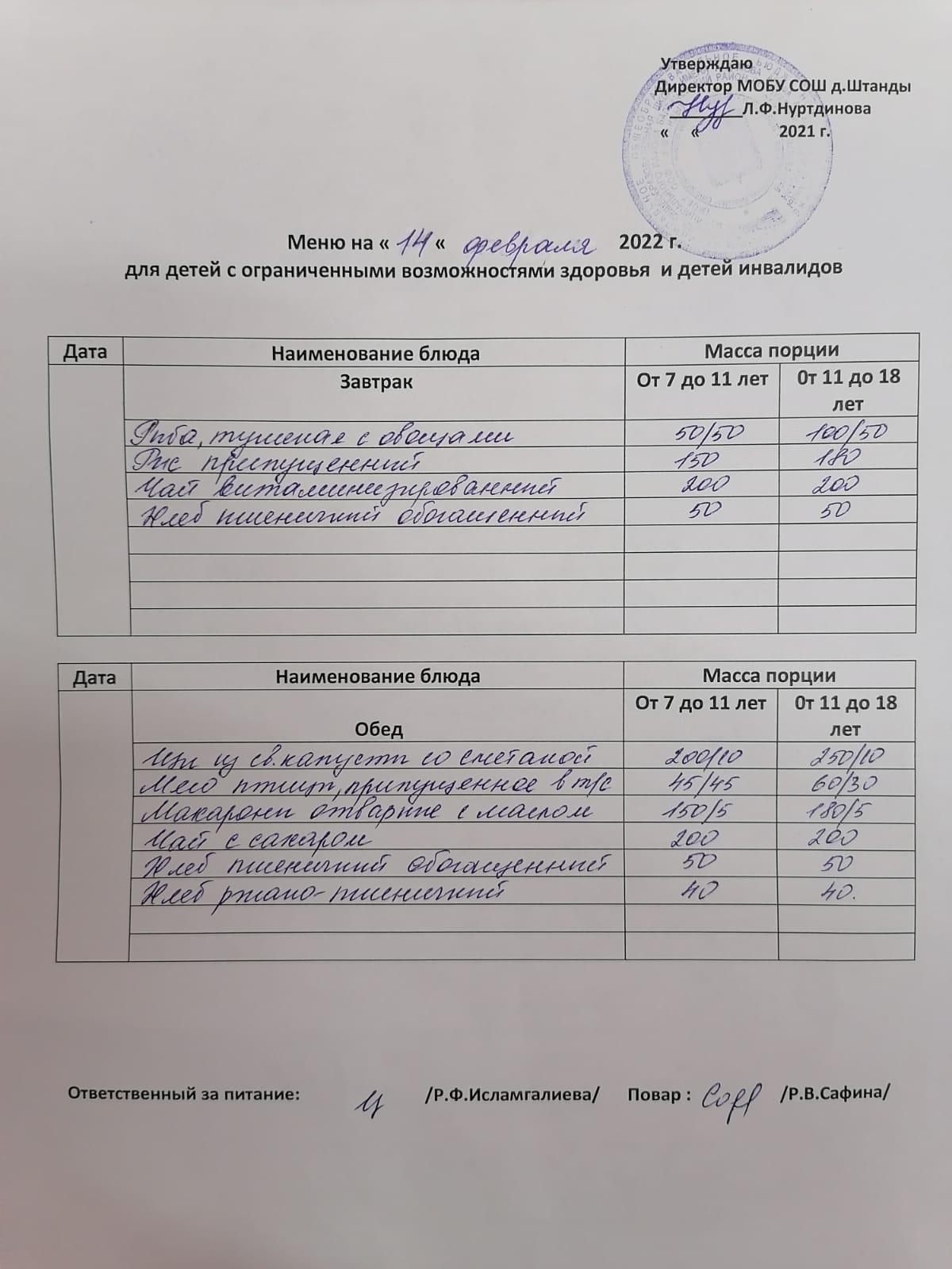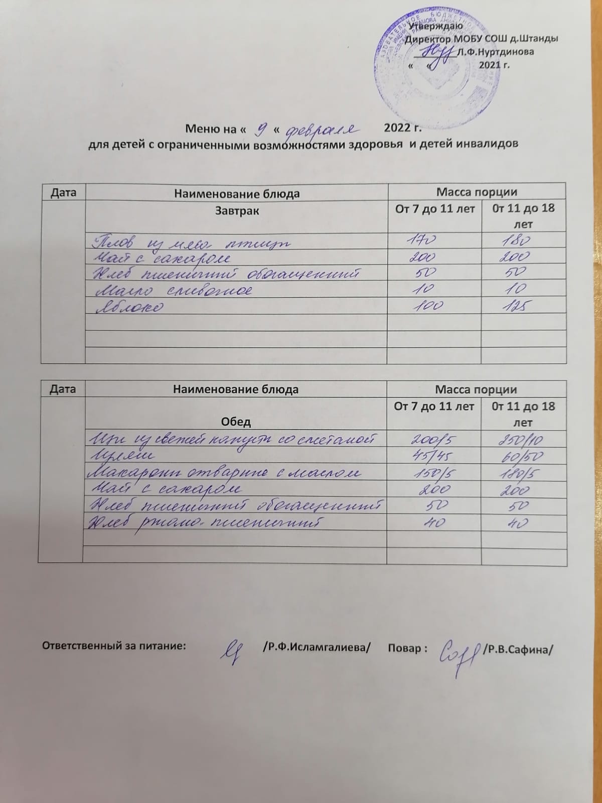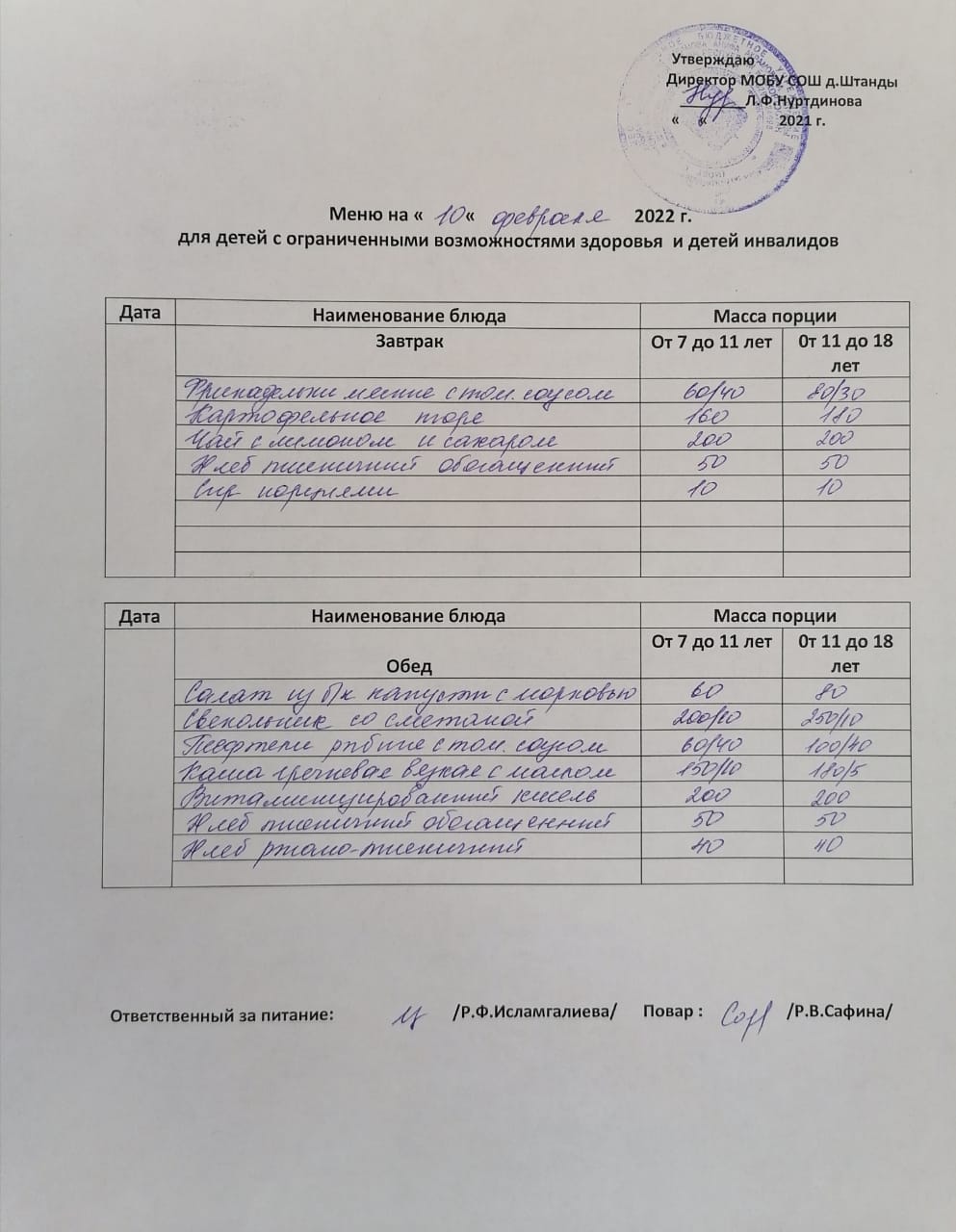 (ОВЗ завтрак и обед)