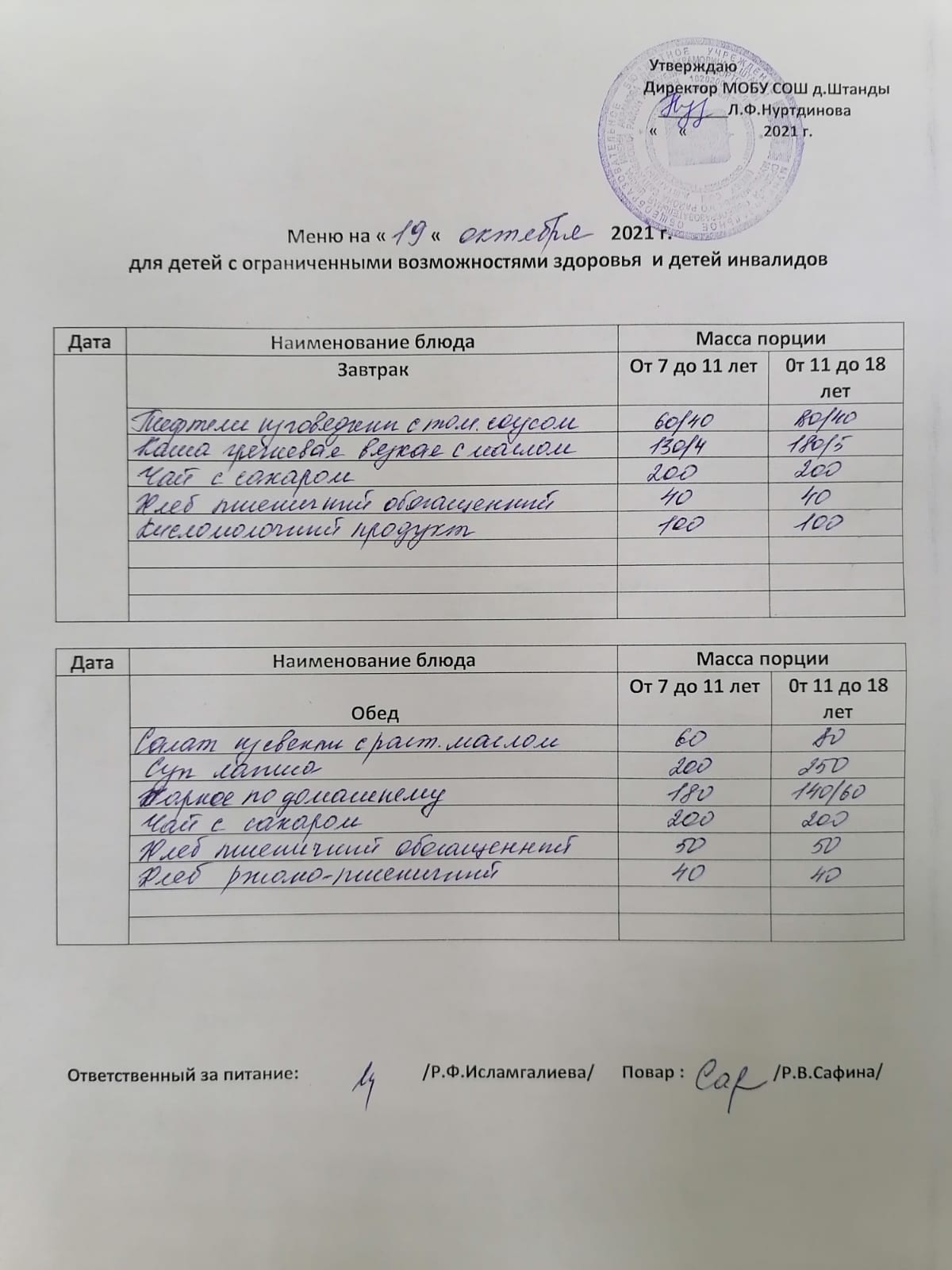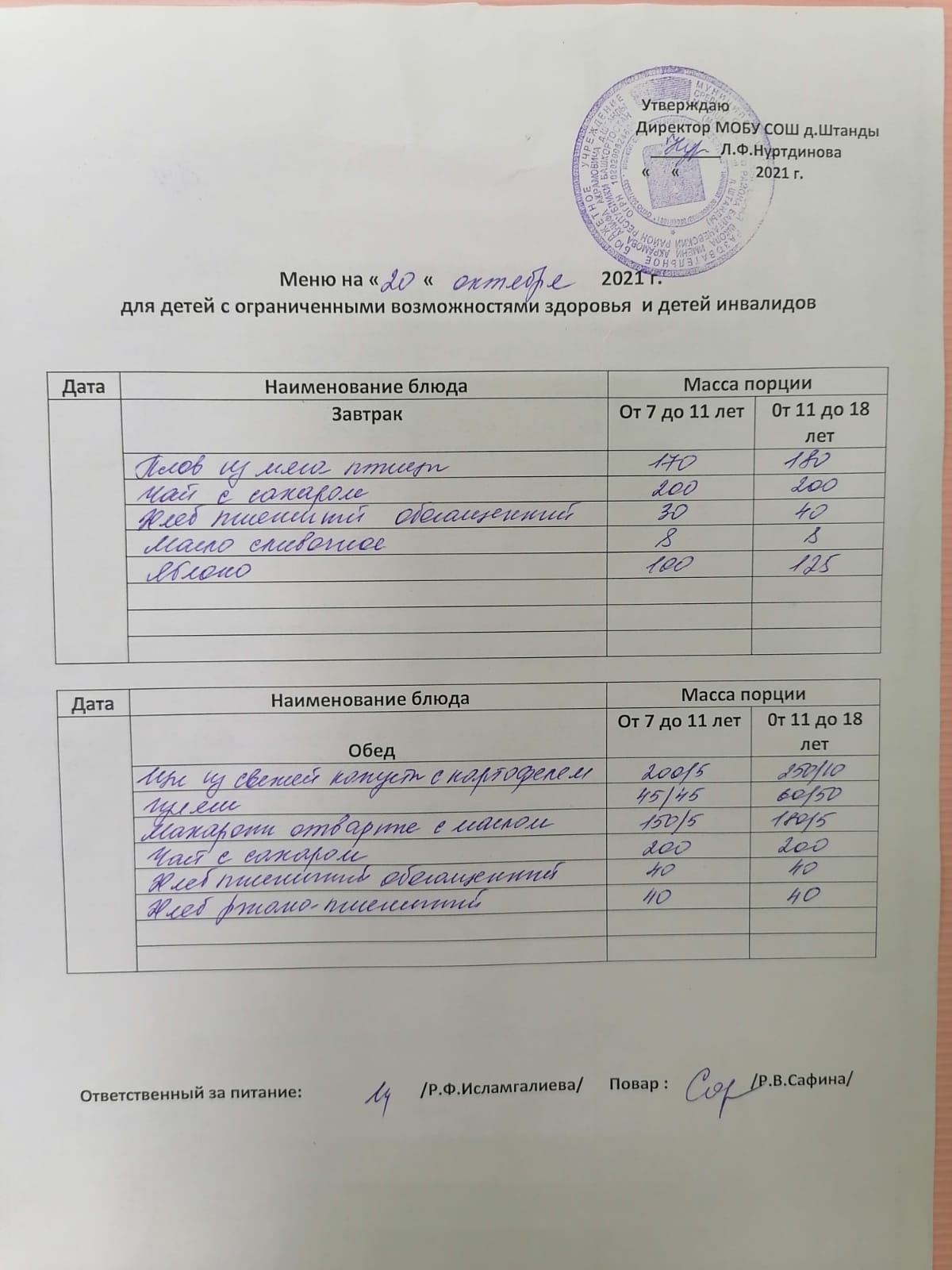 (ОВЗ завтрак и обед)